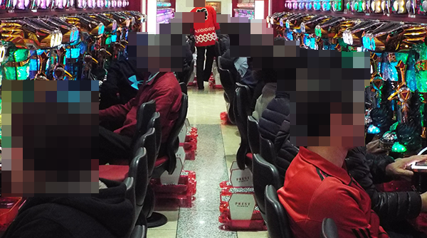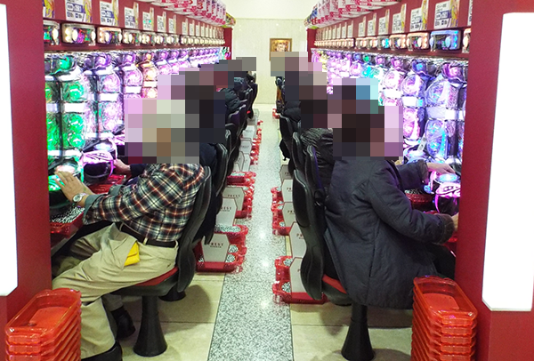 14時頃になると、4円パチンコの「CR牙狼 魔戒ノ花」はほぼ満席となっているほどの盛況ぶり。