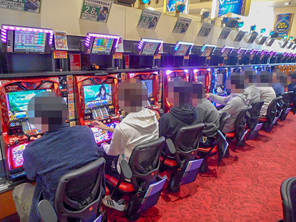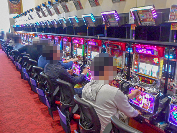 20円パチスロに目を向けると、「バジリスク~甲賀忍法帖~絆」や「沖ドキ!-30」で華麗なパフォーマンスを披露するプレイヤーが複数見られ、シマ内から活気が感じられた。