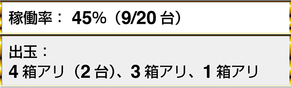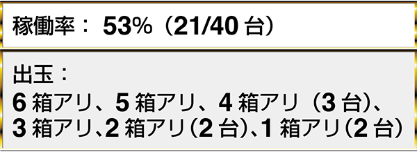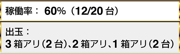 ・『ミリオンゴッド-神々の凱旋-』は2台に5箱以上アリ