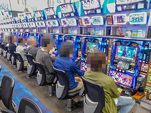 500円/89枚パチスロに目を移すと、楽しそうにレバーを叩くプレイヤーの姿が至る所で見られた。