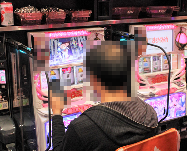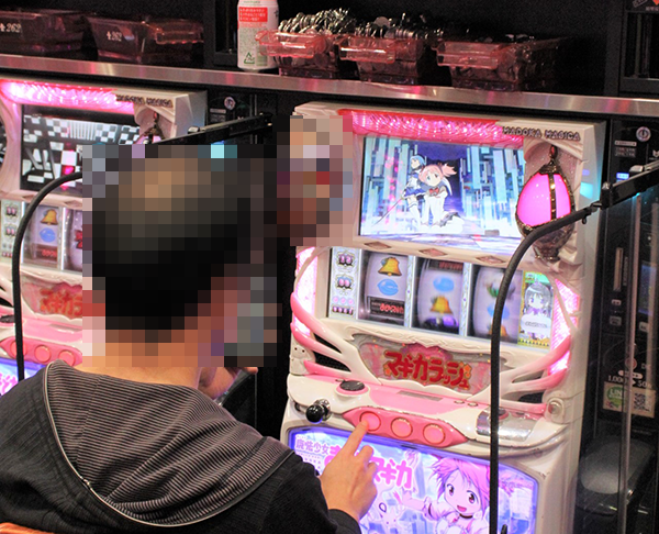さまざまなスペックの機種が支持されているホール内には、遊技を満喫するといったプレイヤーが多かった。なかでもうれしそうな姿が目立っていたのは「SLOT魔法少女まどか☆マギカ」だ。