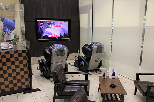 レストスペースにマッサージチェアや大きなテレビが置かれていることも好印象。体の疲れを癒しながらテレビ番組を楽しむことで、リラックスした時間を過ごせそうだ。