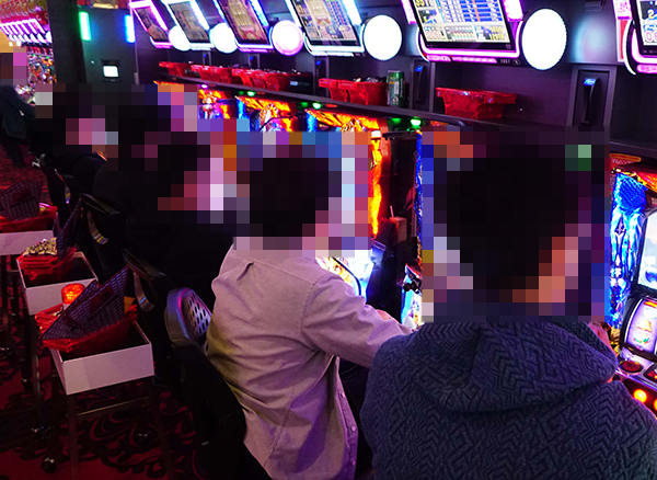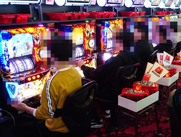 鮮やかな赤色のじゅうたんや随所に施された装飾が目をひくパチスロコーナーを進んでいくと、多くの場所でプレイヤーたちが華麗な活躍を披露していた。