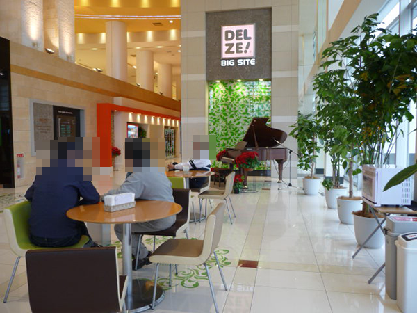 ホール内には禁煙と喫煙の2種類のレストスペースが用意されている。窓際にあるレストスペースには、グランドピアノが置かれているなど、インテリアにもこだわりが感じられた。