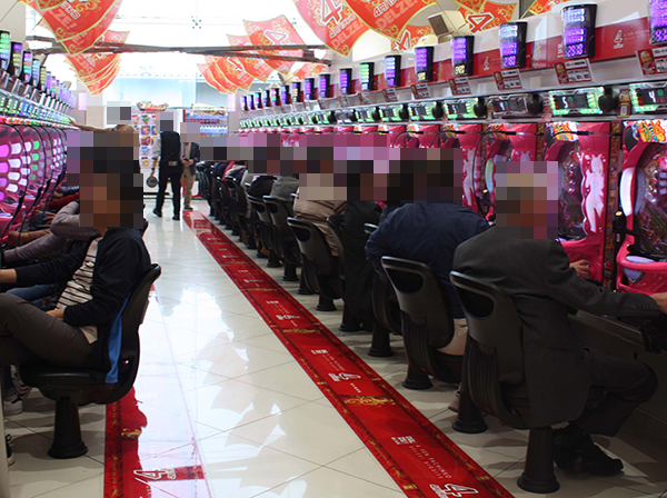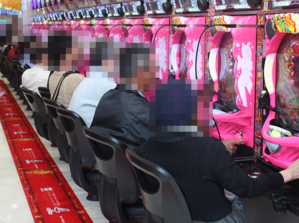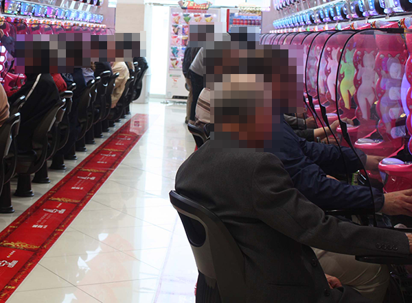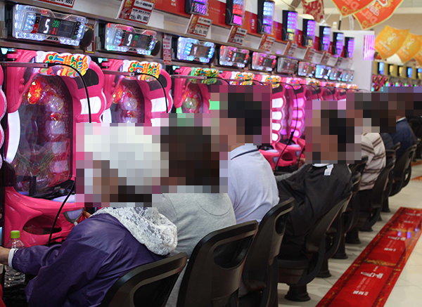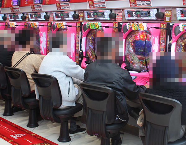 ホールに到着し、ガラス張りの部分からホール内の様子をうかがってみると、たくさんのプレイヤーが笑顔で遊技をおこなっていた。