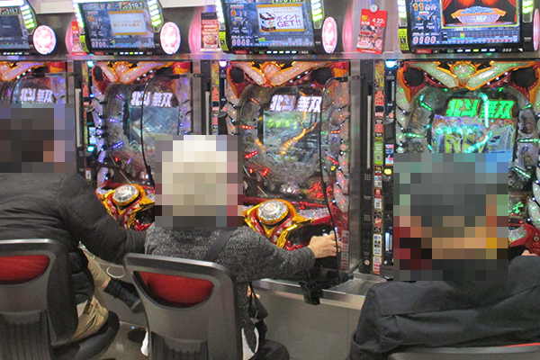 さまざまなスペックの機種が活気に包まれていた「デルゼビッグサイト黒埼店」。なかでも、「ぱちんこCR真・北斗無双」で目にしたプレイヤーたちの笑顔はとくに輝いてみえた。