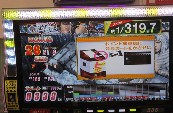 また、17時頃にデータカウンターをみてみると、大当り回数が28回を表示しているデータがあった。