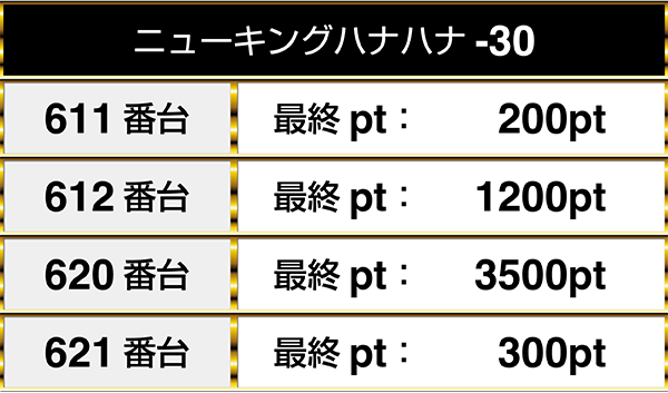 『沖ドキ!-30』と『ニューキングハナハナ-30』で構成されているシマにも、2台が並んでプラスptを記録しているデータがあった!