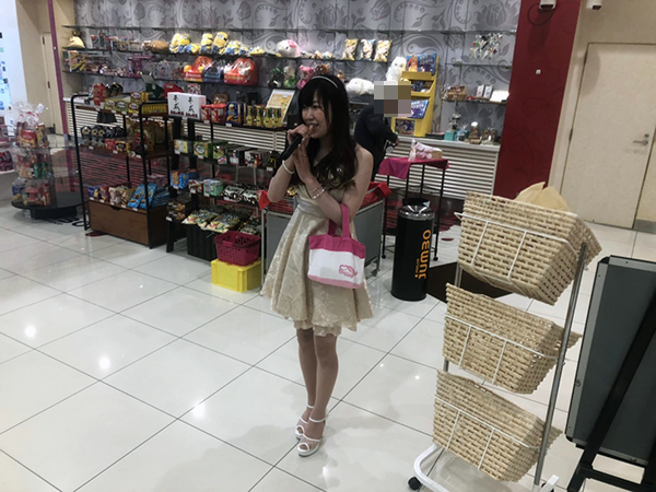 元気よく店内をまわっていったふみちゃんは、マイクを使ったご挨拶も披露★ みなさんに心のこもったメッセージが届きますようにっ。