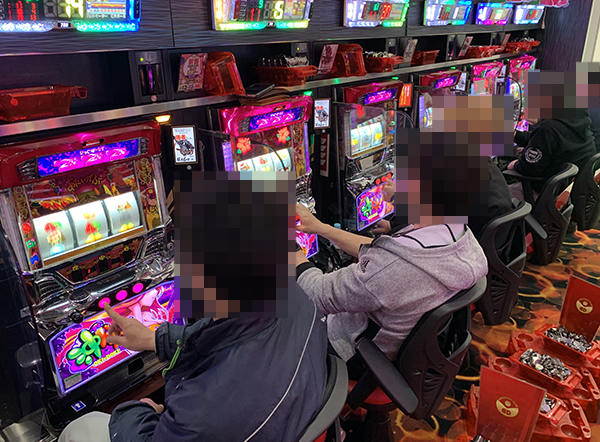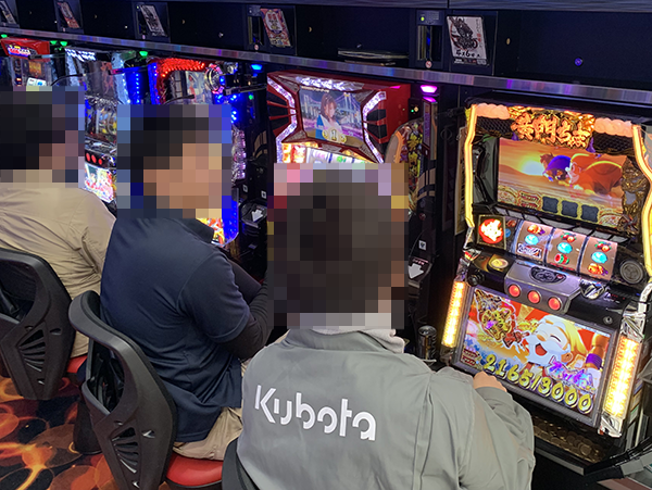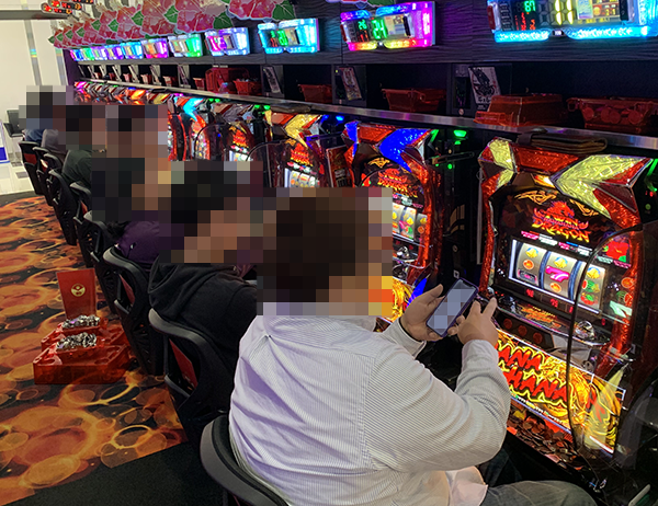 定番機種である海物語シリーズでも、プレイヤーたちは笑顔。明るいムードのなかで遊技を楽しむ姿は、ひとりのプレイヤーとしてみても魅力的に映った。