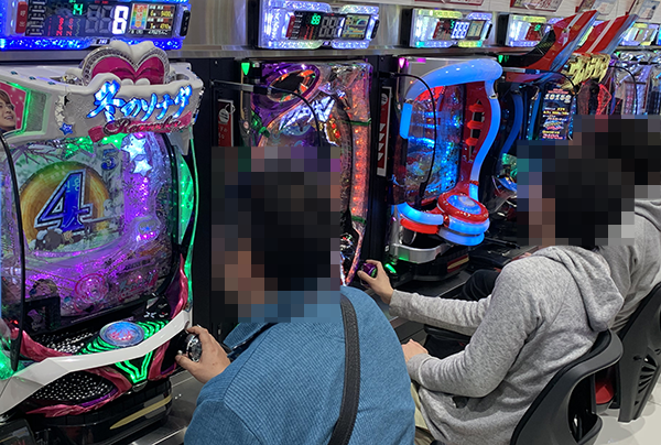 じっくりと遊べるといった低貸し玉コーナーもにぎやかな状況。