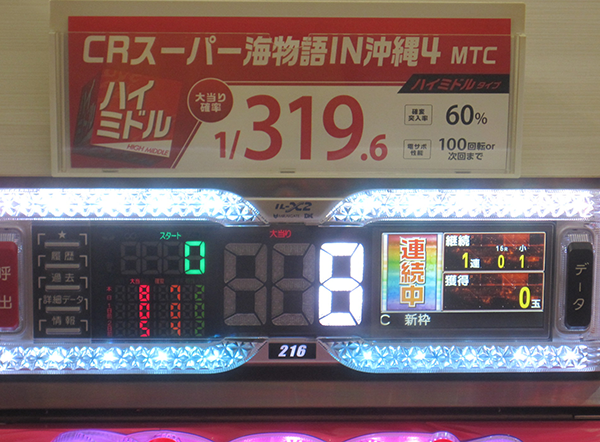 稼動していなかったほかの台もみてみると、楽しまれていたと思われる台が複数。データ表示機からは満足度の高さがうかがえ、空き台があるのは個人的にもったいないと思った。