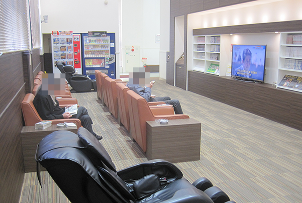 広い台間やスライド式の分煙ボード、ひじ置きなど、設備面も優秀。マンガ本やテレビといった楽しく過ごすためのアイテムが揃っているレストスペースもあり、快適な環境が整っていると感じた。