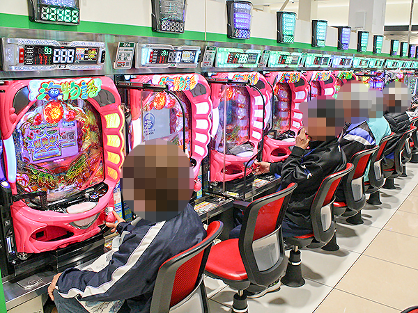 14時ごろの4円パチンコでは「CR大海物語4」や「ぱちんこ GANTZ:2」、「CR大海物語4 BLACK」の盛り上がりが大きく、魅力的なシーンをシマのあちこちで目にしている。