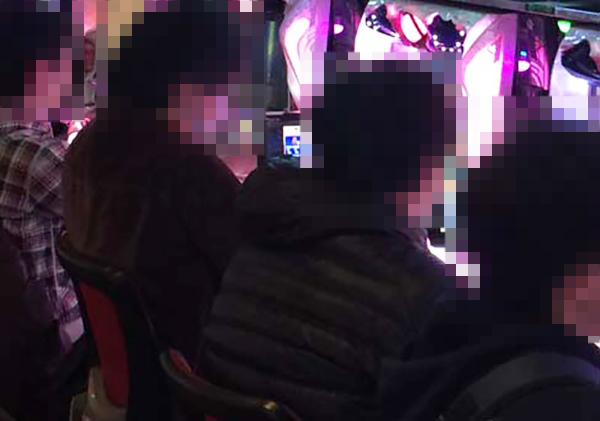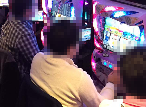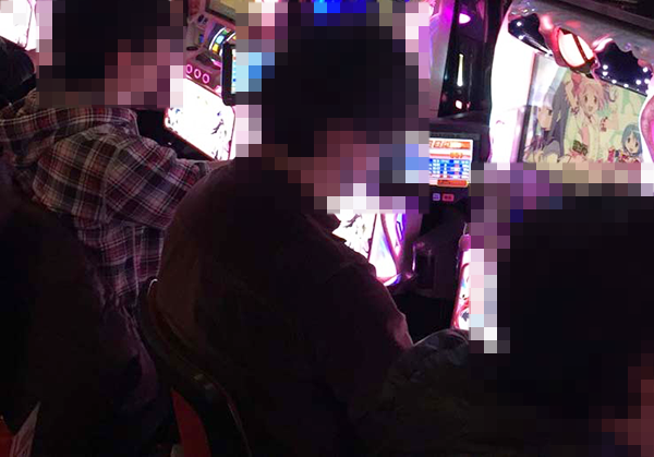 滞在時には9台すべてが稼働しており、3名が持ち玉遊技。データカウンターの数値をうれしそうにチェックする姿も確認している。