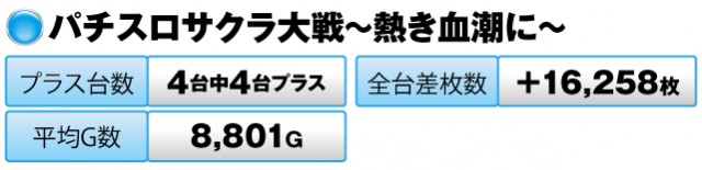 4台すべてがプラスで全台差枚数も+16,528枚をマークした。