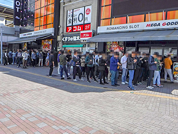開店前から140人を超えるプレイヤーが足を運んでおり、遊技開始を前にして、高揚した表情を見せていた。