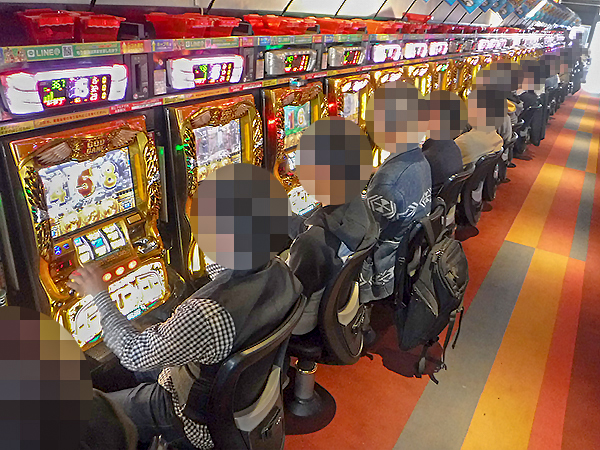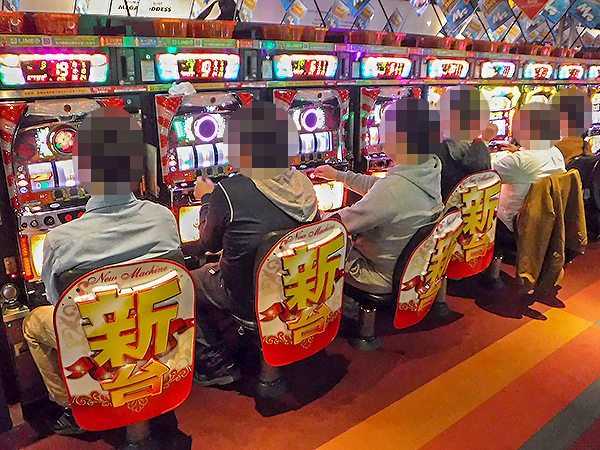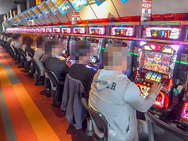 「沖ドキ!-30」や「マイフラワー30」といった沖スロのにぎわいも大きい。機種性能を存分に発揮するプレイヤーに羨望が集まっていた。