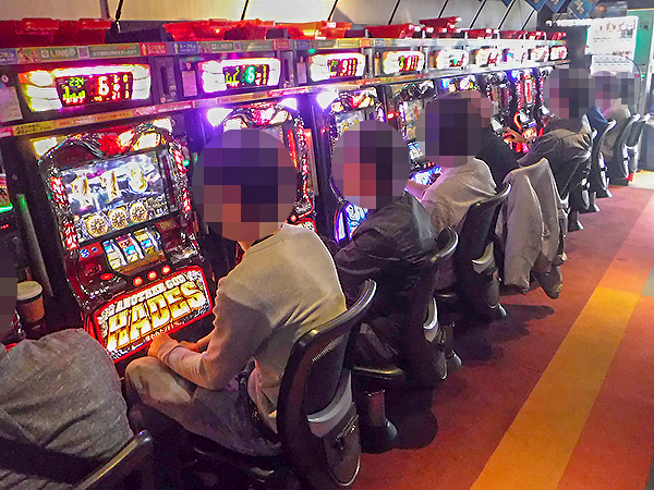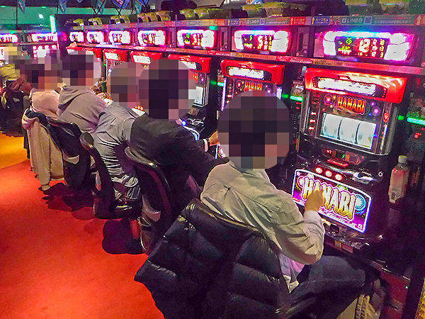 開店直後のプレイヤーの動きを追ってみると、20円パチスロの「バジリスク~甲賀忍法帖~絆」が人気で、ほぼ満席となっていた。