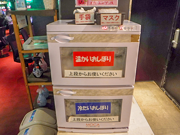 店内には手袋・マスク・おしぼりが用意されており、より快適な環境で遊技を楽しめるようになっている。