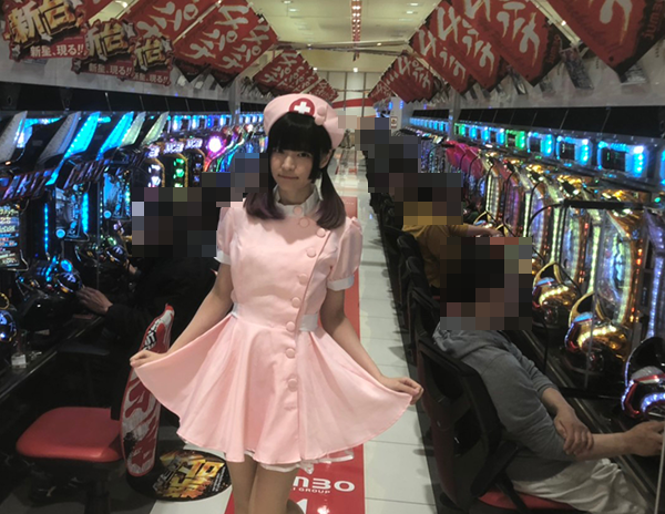 今回は、ピンク色のナース風のコスチュームにへんしーん!
