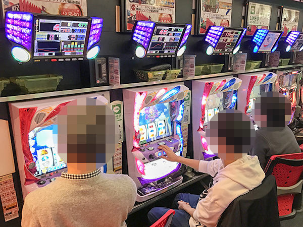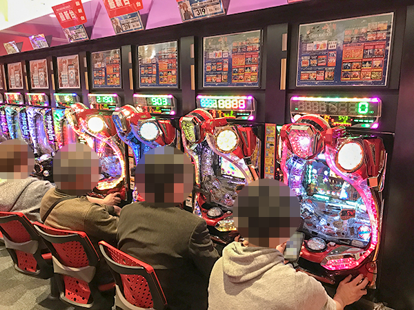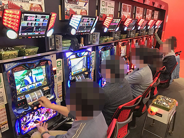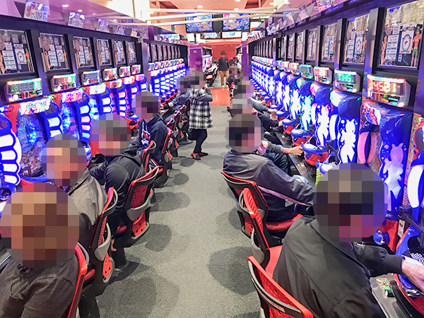 取材時の店内には既に多くのプレイヤーが集結し、パチンコ・パチスロを問わずにぎやかな状況となっていた。