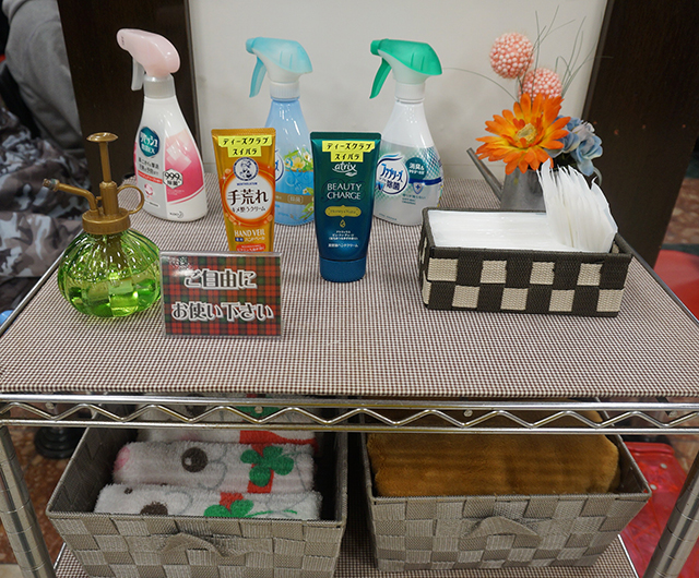 消臭スプレーや手荒れクリームの設置、