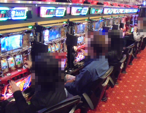 パチンコとパチスロをあわせて1000台以上の遊技台が設置されているホール内では、さまざまなスペックの機種が盛況。どこに目を向けても鮮やかな光景が広がっていた。