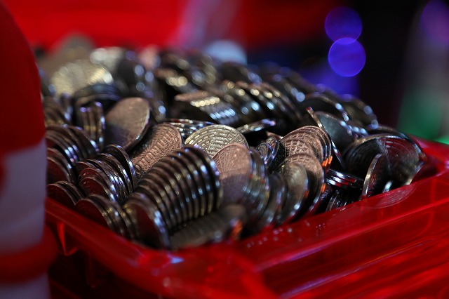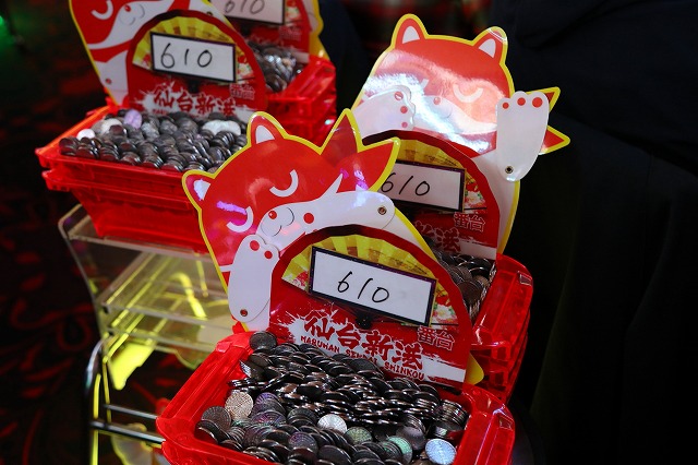 溢れ出たメダルが、続々と別積み用のラックへと積み重ねられていく。