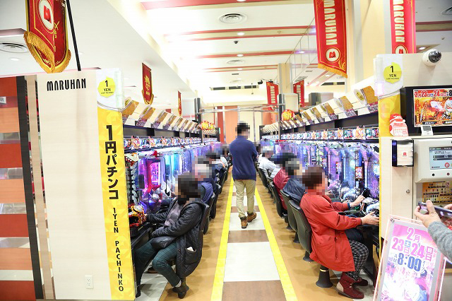 | 1円パチンコエリアも大盛況。ホール内はどこも満遍なく高い稼働をキープ。 |
