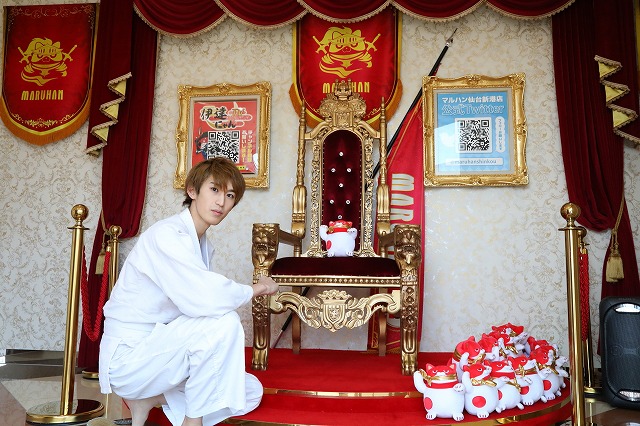 田中は玉座に座るにゃんまるにひれ伏して、売れっ子祈願??
