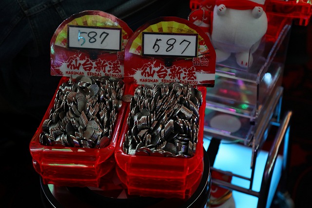 | 「マルハン仙台新港店」の賞品コーナーは魅力いっぱい。定期的に入れ替わる限定賞品は見逃し厳禁! | |