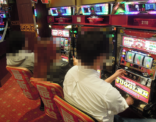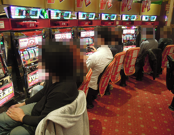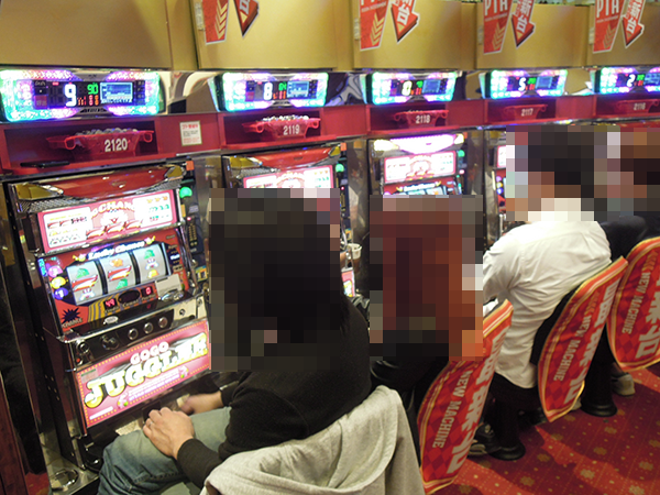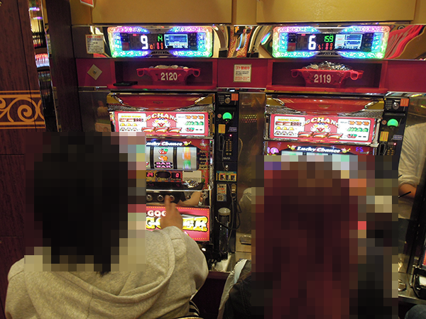 いたるところが活気に満ちているなかで、明るいムードを感じたのはジャグラーシリーズ。なかでも、新台の「ゴーゴージャグラー2」がにぎわっており、プレイヤーはシンプルなおもしろさを味わえていた様子だ。