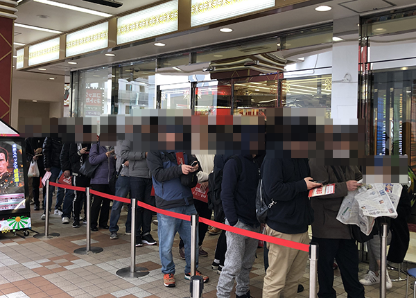 遊技の話などで盛り上がっているプレイヤーがいたことも印象的。開店までの時間を楽しく過ごしているように思えた。