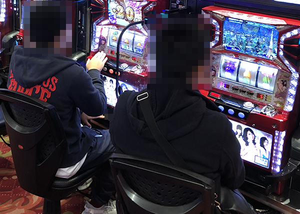 定番機種であるジャグラーシリーズも高稼働。笑顔でレバーを叩いている姿があり、有意義な時間を過ごしているように思えた。
