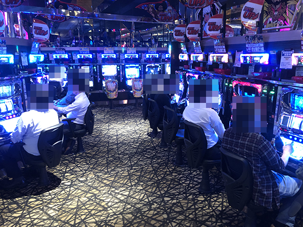 笑みを浮かべてレバーを叩く姿が並ぶ光景は壮観。にぎわっているホール内でも、とくに存在感がある機種だと思えた。