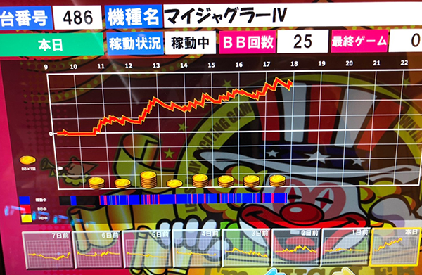 今回のアッパーは、486番台の【マイジャグラーⅣ】に出現した…