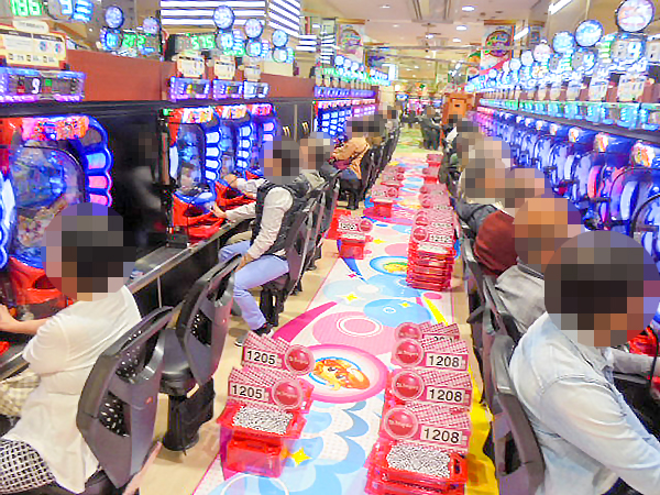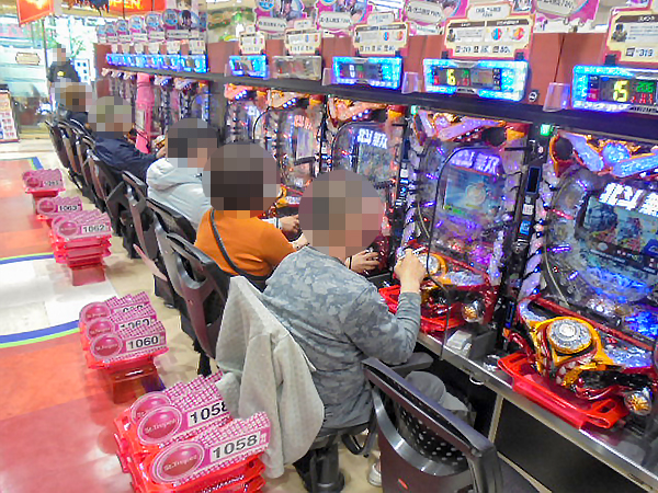 15時過ぎの4円パチンコを見ると「ぱちんこCR聖戦士ダンバイン」や「CR大海物語4」が盛況の様子。華麗なパフォーマンスを披露するプレイヤーを多数目撃している。
