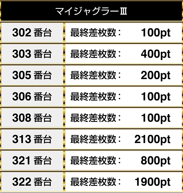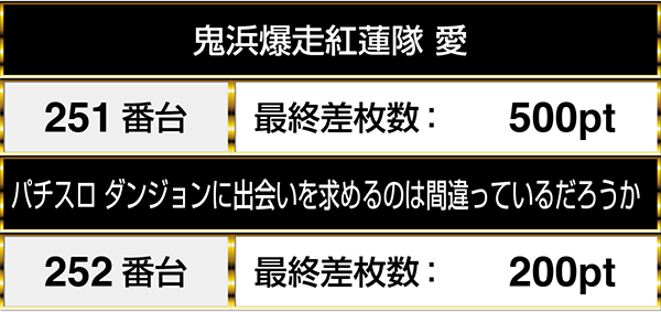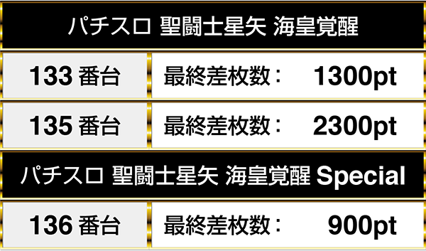 「パチスロ 聖闘士星矢 海皇覚醒Special」と「パチスロ聖闘士星矢 海皇覚醒」も機種をまたぎ、3台が固まってプラスptを達成していた。