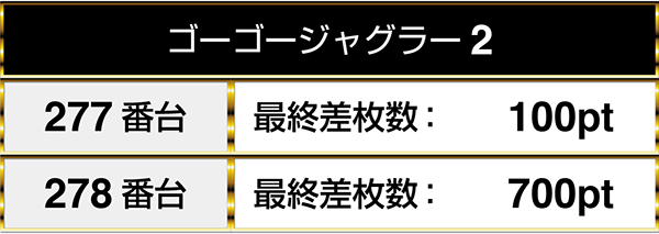 滞在時には「ゴーゴージャグラー2」と「ニューアイムジャグラーEXーKT」でも、魅力的なシーンを目にしている。