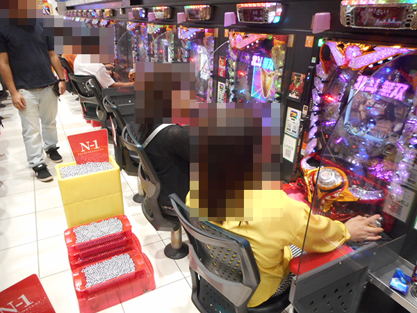 取材を開始した16時半ごろの店内には、すでに多くの猛者が集まっており、あちこちで遊技という名の戦が繰り広げられていた。
