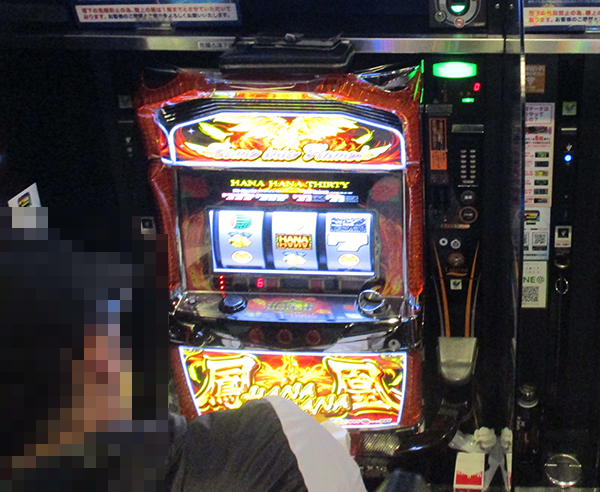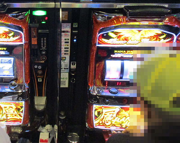 「ハナハナ鳳凰-30」に笑顔が広がり、さまざまなハナハナシリーズが集められたシマにおいて、ひときわ存在感が大きかった。