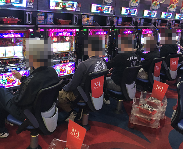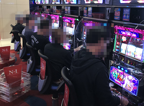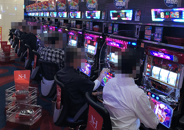 15台が設置されており、確認時は7割以上の台で遊技をおこなうプレイヤーを目にしている。レバーを叩いてからストップボタンを押すまでの動きがかろやかであり、イキイキと遊技をおこなっていた。