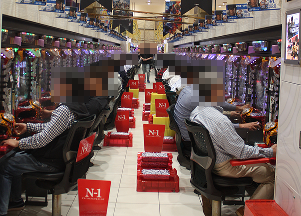 15台ずつが向かい合わせに設置されており、確認時はほぼ満席。笑みを浮かべるプレイヤーがズラリと並んでいる光景は壮観であった。