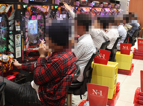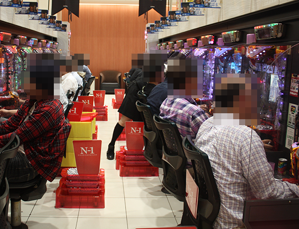 ひじ掛けに体を預けているなど、プレイヤーはリラックスしながら遊技を楽しめている様子。