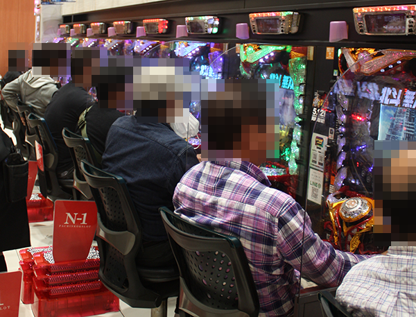 パチンココーナーを歩きながら各シマをみていくと、ひときわにぎわっている「ぱちんこCR真・北斗無双」が目に映った。