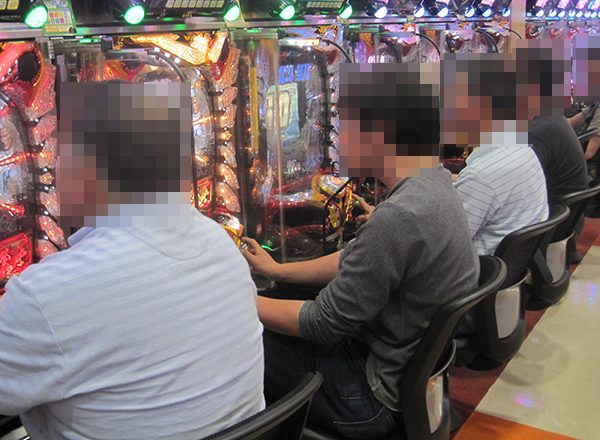 パチンココーナーに目を向けると、笑みを浮かべているプレイヤーが多数。階段のように、ひとつずつ台をズラして設置されているといった珍しい形のシマがあるなど、ユニークなみための店内で充実した遊技をおこなえていると思えた。
