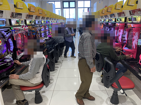 とくに人気となっていたのが1円パチンコであり、楽しそうな光景が広がっていた。