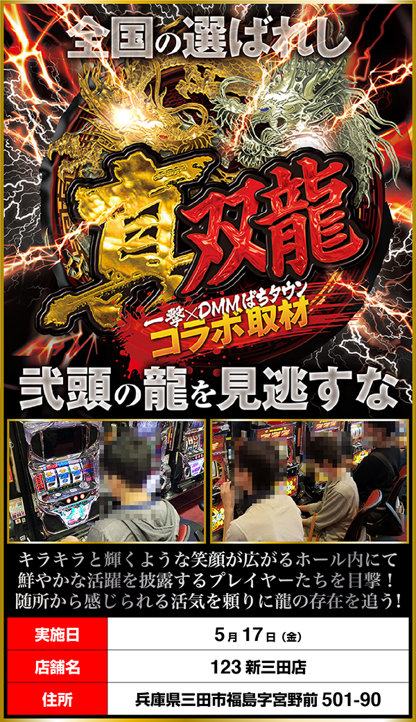 遊技面を中心に、魅力にあふれている「123新三田店」。厚い支持を受けており、入店してから退店するまでつねに盛り上がりが感じられた「真双龍」となった。