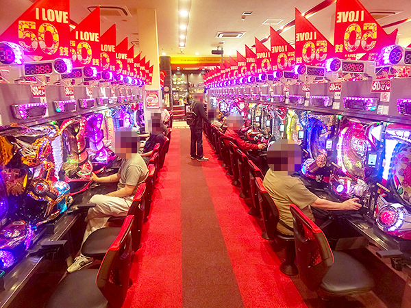 4円・1円パチンコの支持も厚く、シマ全体がプレイヤーの熱気に包まれていた。